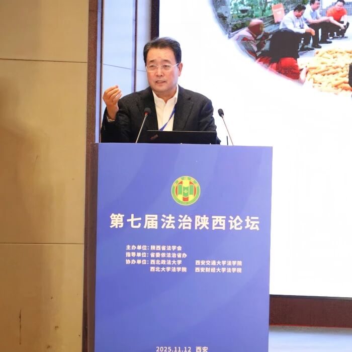 2025年11月12日,由陕西省法学会主办,西北政法大学、西安交通大学法学院、西北大学法学院、西安财经大学法学院协办的第七届“法治陕西论坛”在西安隆重举行。论坛以“以习近平法治思想为引领,推动法治政府建设迈上新台阶”为主题,汇聚全省政法系统、高校、实务界代表,围绕法治建设重点议题展开深入研讨。