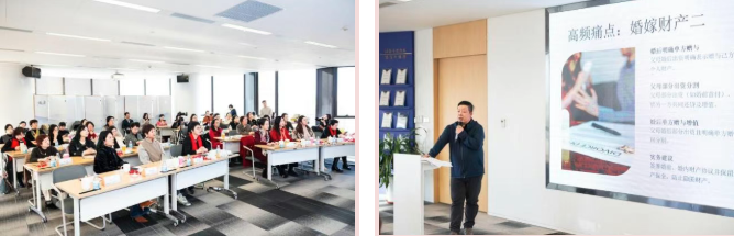 作为本次盛会的核心环节,律所精心筹备两场紧扣企业发展核心需求的法律实务分享,为女企业家群体送上精准的法治赋能“大餐”。首先,程广玉律师团队的杨盼明律师带来《婚姻制度演变与法律实务解析》主题分享,从历史脉络梳理到现实典型案例拆解,深入浅出地剖析了婚姻家庭领域的核心法律要点与风险防范措施,为女企业家平衡事业发展与家庭治理提供了切实可行的法律指引。