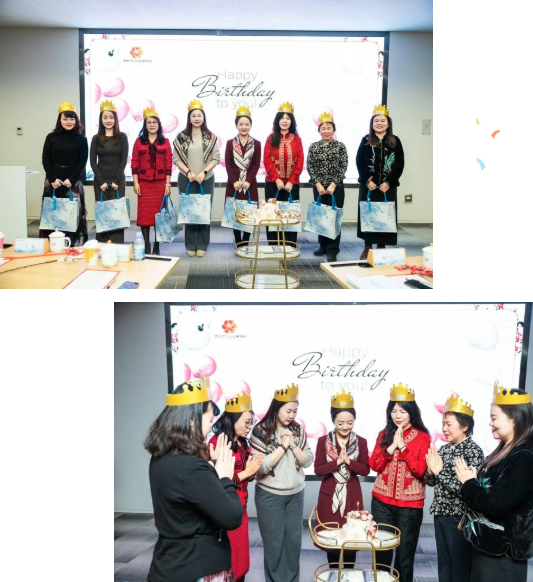 在悠扬的钢琴伴奏中,史今会长、王蚕书记、雷霆秘书长等八位寿星共同许愿、切开生日蛋糕,接受了协会及程广玉律师团队赠送的精美礼物。同时,程广玉律师团队亦为所有到场嘉宾准备了贴心伴手礼,细节之处尽显对女企业家群体的关怀与敬意,现场温情涌动。