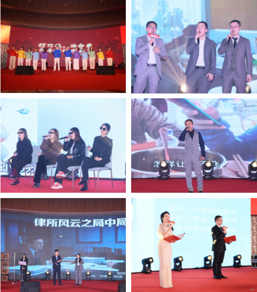 刑事部与建筑房地产部联合表演小品《律师风云之局中局》,由张渊、刘梦莹、袁月主演,程伟担任编剧,以律师工作为灵感,用幽默诙谐的方式演绎律师职场的风云故事,引人入胜;刑事部薛洲带来独唱《微笑》,用轻快旋律传递积极向上的生活态度;公共法律服务中心姚伟、薛爽搭档上演对唱《鲜花》,默契配合,歌声里满是温情与期许。建筑房地产部张瀚升、汪斌、王翔等七位伙伴带来创意十足的小合唱《全是爱》;公司财税部刘真汝、樊欣宜等十二位表演者带来快板《青律快说》,节奏明快、朗朗上口,将青年律师的青春风采展现得淋漓尽致;金融部李莹莹献唱《芈月传》主题曲《满月》,婉转唱腔尽显古典雅致。涉外部韩孟奇带来独唱《新贵妃醉酒》,兼具别样的柔美与豪情,完美诠释经典曲目。接下来,以律所主任赵黎明、著名作曲家戚建波共同创作的歌曲《正义之光》为蓝本,特色节目轮番上演、亮点纷呈。任寰阳、冯璇璇倾情演绎诗朗诵《正义之歌》,以铿锵激昂的语调、坚定有力的表达,诉说着律师群体对正义的执着坚守与不懈追求,彰显出海普睿诚人胸怀法治、践行使命的责任与担当;更有各部门凝心聚力、联合发力,黄钰婷、张馨媛、张渊等十七位表演者携手呈现歌伴舞《正义之光》,将歌舞艺术深度融合,以串烧演绎、换装场景切换的创新形式,让旋律与舞姿相映成辉、相得益彰,为整场活动奠定了庄重昂扬、坚守奋进的基调。