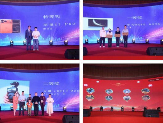 穿插其间的抽奖环节,不断点燃阵阵欢腾。电子大屏上光影飞旋,倒计时的声浪如潮迭起,一个个“年度锦鲤”在万众期待中诞生。特等奖苹果17 Pro Max、一等奖华为MateBook 14、二等奖大疆Osmo Pocket 3、三等奖华为手表GT6,以及蓝牙耳机、深睡枕等近两百份惊喜好礼,不仅承载着关怀的温度,更凝聚着律所对每一位同仁辛勤耕耘的答谢。